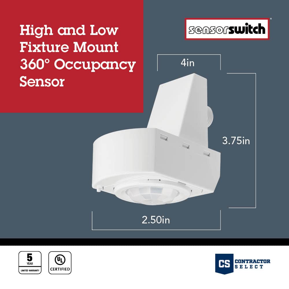 - COMMERCIAL PIR SENSOR: The SensorSwitch LSXR line voltage fixture mount occupancy sensor automates indoor lighting; Passive Infrared (PIR) detection cuts wasted run time and saves energy in warehouses, offices, corridors, and gyms